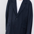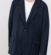 シルエットは大きめのボックス、低めに設定したゴージ位置がさらに抜けた印象を出します。